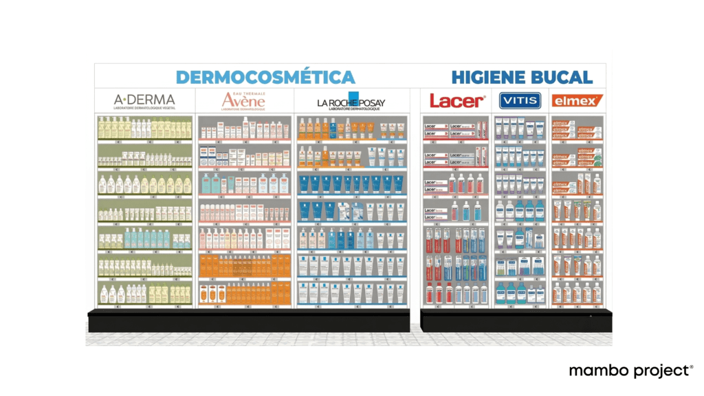 Este modelo — Gran categoría → Marca → Subcategoría — es el que nosotras recomendamos en la mayoría de farmacias porque guía al cliente en su proceso de compra sin hacerle ruido. Existe otra estructura más avanzada que invierte el orden de marca y subcategoría, pero requiere un estudio detallado de category management y merchandising, y no es la solución adecuada para todos los espacios ni todos los momentos.
